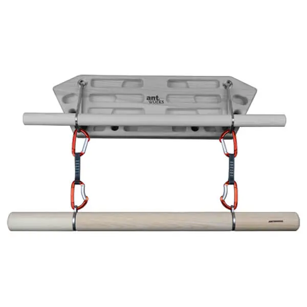 Eine Klimmzugstange mit Kniff – die Lukis Darling von Antworks! Die Stange ist passend als Ergänzung für die Ant Bar, wo sie z.B. mit Express-Sets befestigt wird, kann aber auch solo zum Training hergenommen werden. Der Clou: Die Stange verdreht sich radial – daher braucht man zusätzlich Kraft, um gegen die Rotation zu halten. Die mögliche Folge: ein bärenstarker Zangengriff und viel Power für Aufleger, von einem Mörderbizeps einmal abgesehen. Mit 60 mm Durchmesser lässt sich die Stange schweriger halten als dünnere Stangen an der Ant Bar.Da die Stange in einer großzügigen Länge von 94 cm kommt, lassen sich auch weitgriffige Position optimal trainieren. Nicht zuletzt wurde die Klimmzugstange in liebevoller Handarbeit aus hochwertigem Eschenvollholz in Österreich hergestellt. Wer seinem Klimmzugtraining einen zusätzlichen Kniff geben möchte, liegt mit der Antworks Lukis Darling richtig!