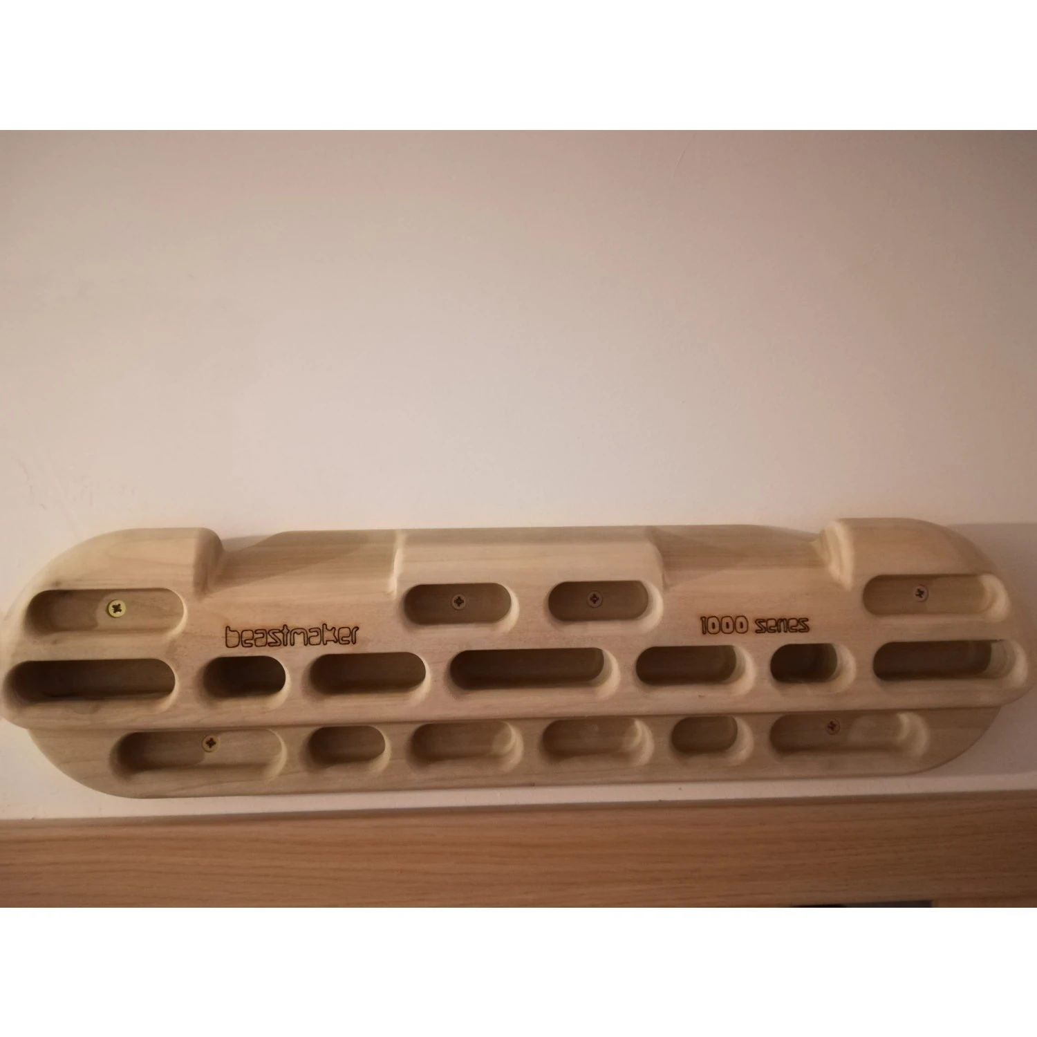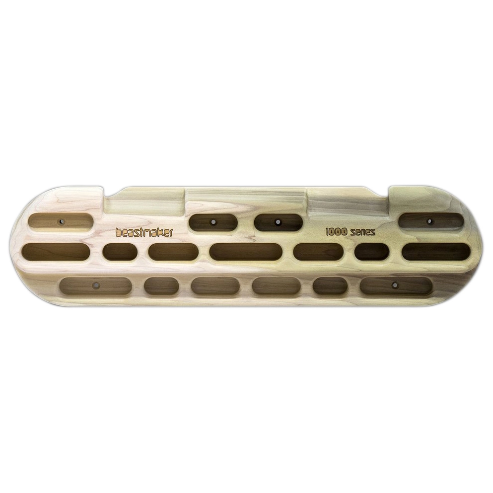 Damit klappt das Training: das 1000 Series Trainigsboard von Beastmaker! Das Board ist aus Holz und bietet praktisch für jeden wichtigen Kletter-Muskel den richtigen Griff. 2-Finger-Löcher, schmale Leisten und tiefer eingelassene Griffe ermöglichen ein vielseitiges Training zur Leistungssteigerung. Auch perfekt für Regentage oder die kühlen Wintermonate! .Hinweis: der Beastmaker 1000 besitzt tiefe Löcher, ausgepägte Henkel und großflächige Sloper – kurzum: das perfekte Trainingsboard für Anfänger und Fortgeschrittene.Maße: 58 x 15 cm