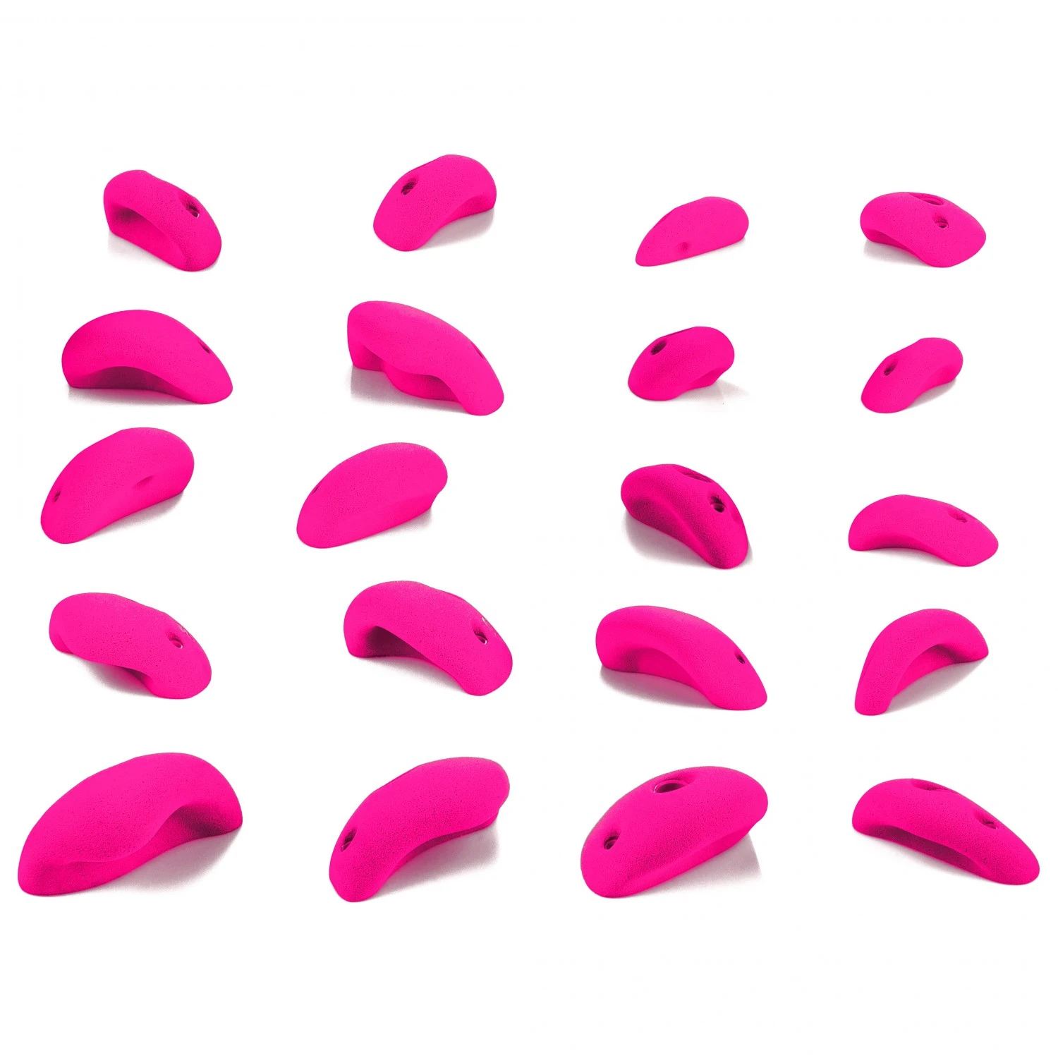 Optimal für Einsteigerrouten – die Jugs von blue pill! Die Jugs sind mittelgroß und aus griffigem Polyester gefertigt, das haltbar und zudem noch einfach zu reinigen ist. Innen sind die Griffe hohl, um deren Gewicht zu reduzieren. Gleichzeitig wird dadurch dank der hohen Anzahl an Befestigungspunkten nicht die Sicherheit und Festigkeit der Griffe beeinträchtigt. Als Fixpunkte dienen M10-, Senkkopf- oder Zylinderschrauben. Im Lieferumfang sind zwanzig Jugs enthalten.