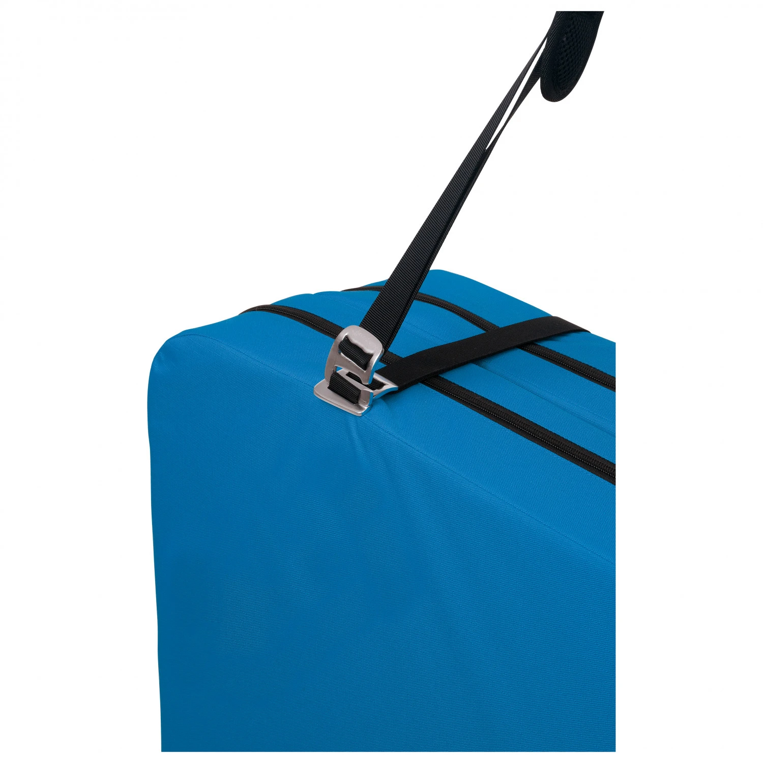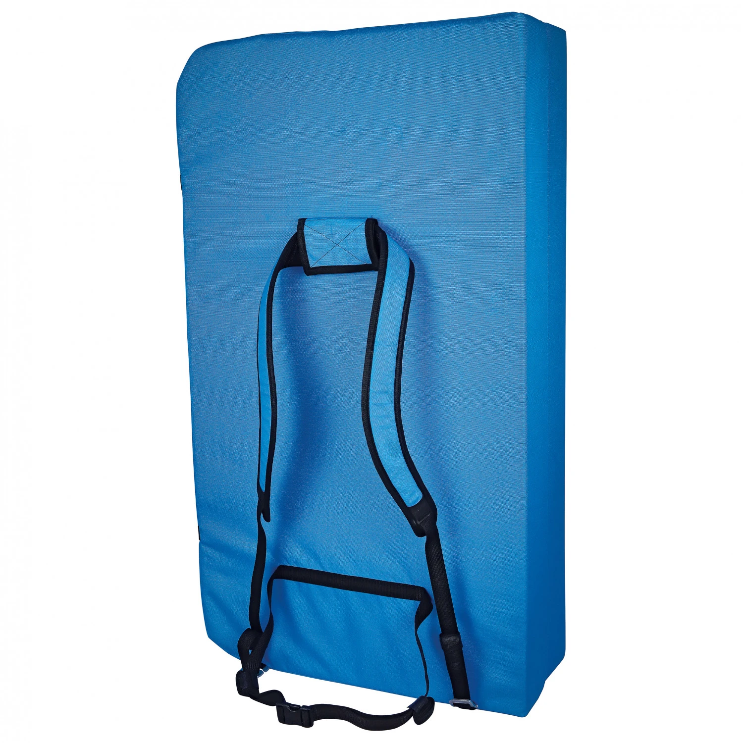 Das C.A.M.P. Minidò Crashpad besteht aus robustem 600D Tri-Ripstop und ist mit drei Lagen Schaum befüllt. Als oberste Schicht dämpft 15 mm dicker PE Schaum, der auch in 35 mm auf der Unterseite vor Durchschlag auf den Untergrund schützt. Die 55 mm starke Schicht aus PU Schaum dämpft in der Mitte und absorbiert beim Bouldern die Aufprallenerige. Das faltbare Crashpad ist mit Aluminiumschnallen ausgestattet und kann entweder auf dem Rücken oder mit seitlichen Tragegurt transportiert werden.