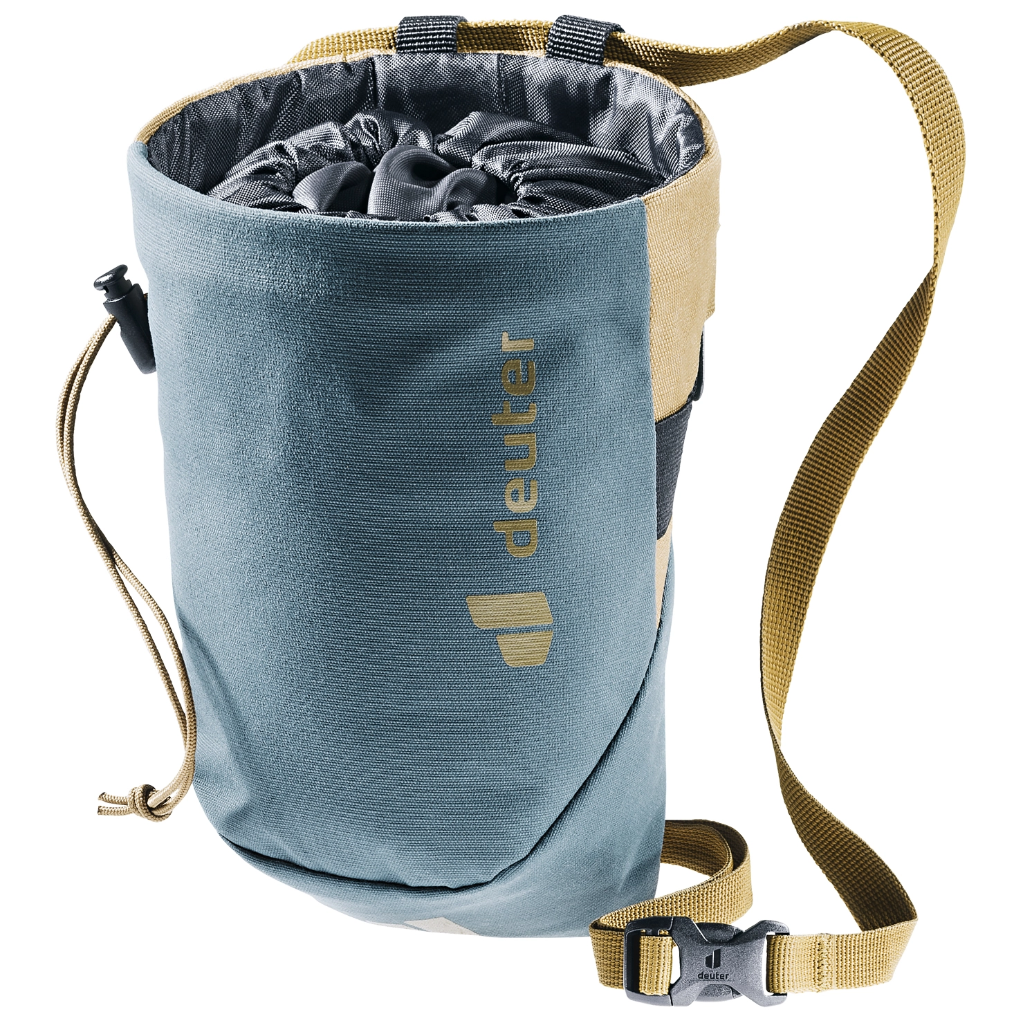 Im Gravity Chalk Bag II L Chalkbag von Deuter lässt sich auch eine größere Menge Chalk bequem transportieren. Die große und versteifte Öffnung mit integriertem Kordelzug und ein leichtes Innenfutter aus Fleece sorgen dabei für angenehmes Chalken und gleichmäßige Chalk-Abgabe. Zwei praktische Taschen mit Reißverschluss auf der Rückseite und zwei seitliche Bürstenhalter ergänzen den großen Deuter Chalkbag.