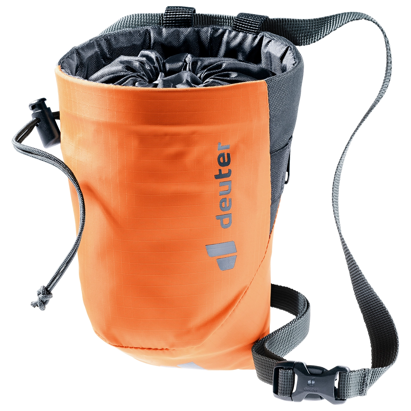 Der Gravity Chalk Bag II M Chalkbag von Deuter ist mit einem weichen Innenfutter aus Fleece ausgekleidet. So sorgt er für eine angenehme und gleichmäßige Chalk-Abgabe und erlaubt schnelles und präzises „Nach-Chalken“. Der Chalkbag ist aus robustem Polyamid Ripstop gefertigt und besteht zum größten Teil aus bluesign zertifizierten Fasern. Ein kleine Tasche, ein Kordelzug und ein verstellbarer Bauchgurt-Riemen ergänzen den Deuter Chalkbag.