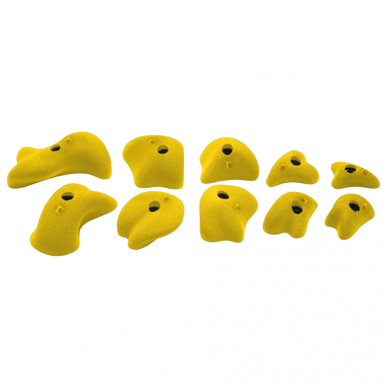 Das Holds Set 3 Modulars von Ocun enthält zehn Klettergriffe mit unterschiedlichen Formen und Größen zum Bau einer Boulder- und Kletter-Trainingswand zu Hause. Mit ihrer feinen Oberfläche und dem angenehmen Grip bieten diese Klettergriffe aus Polyester die optimale Grundlage für ein tolles Training.