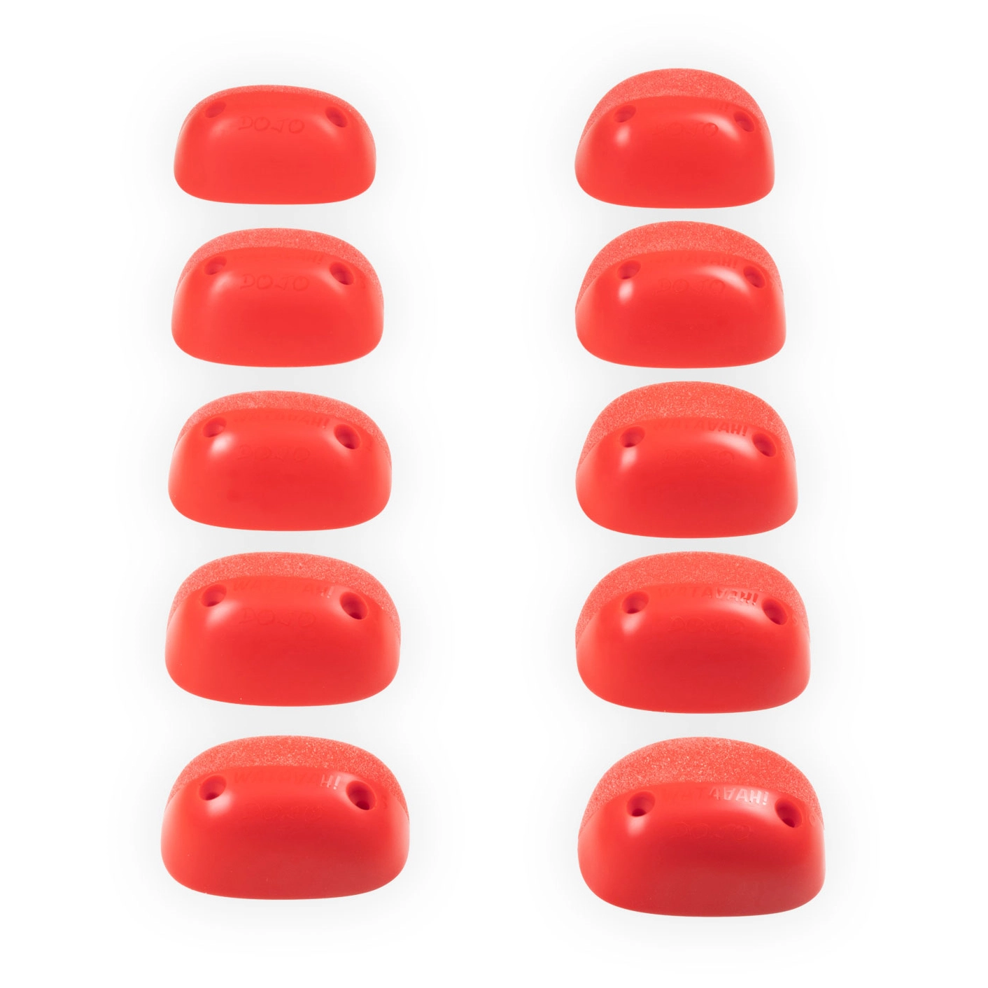 Möchte man seine Kraft steigern und seine Boulder- und Kletterfähigkeiten verbessern, egal ob man ein Anfänger oder ein Profi ist, dann liegt man mit dem Set Dojo 3 von Wataaah genau richtig. Boulderübungen, dynamische Bewegungsabläufe können trainiert und die eigene Hook-Technik verbessert werden. Das Set besteht aus zehn Griffen, die sich perfekt für alle überhängenden Wände mit 20° bis 45° Neigung eignen. Egal ob zu Hause an der eigenen Trainingswand oder als Bestandteil einer Spray Wall montiert bleibt das Training mit den Griffen abwechslungsreich. Wie in einem Dojo kommt man mit Disziplin und viel Übung seinen Zielen näher!